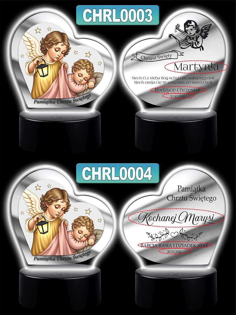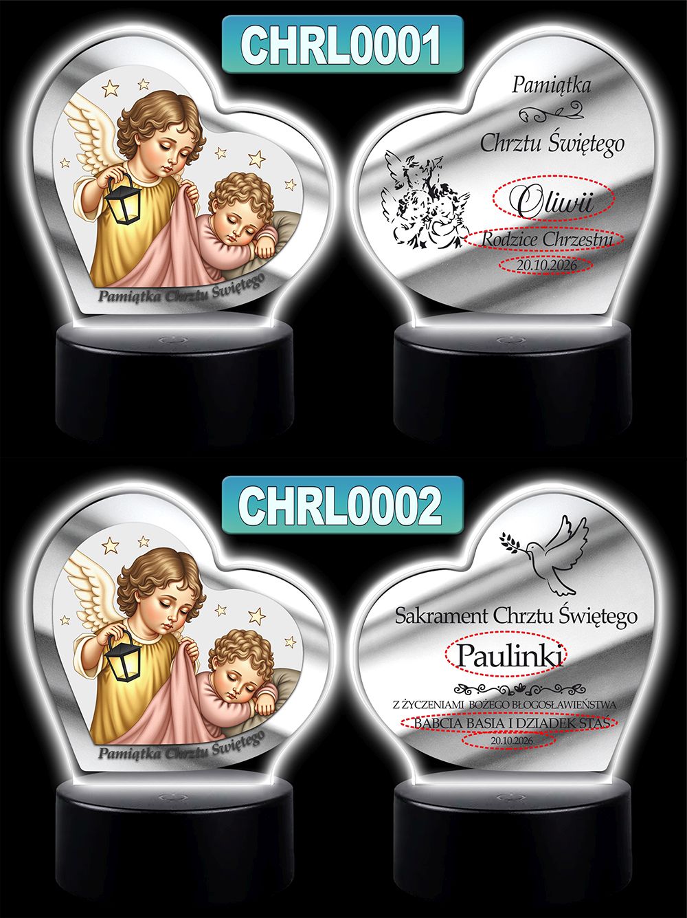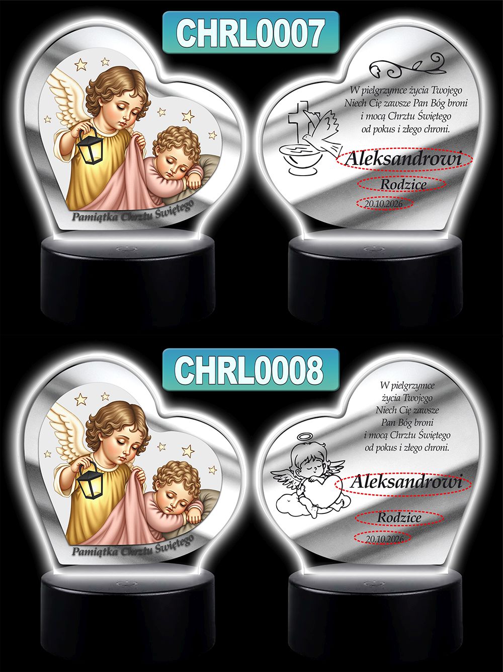 Wyjątkowa pamiątka sakramentu Chrztu Świętego – podświetlany obrazek w kształcie serca z wizerunkiem Anioła Stróża