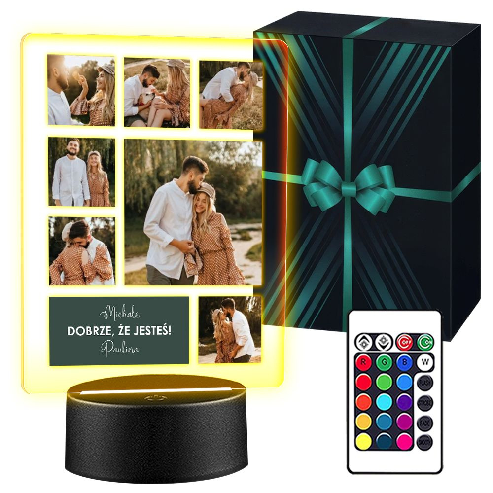 RAMKA ZDJĘCIE NA SZKLE  LAMPKA NOCNA 3D LED KOLORY + PILOT