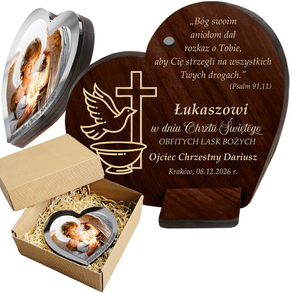 Wyjątkowa pamiątka Chrztu Świętego – obrazek w kształcie serca z Aniołkiem